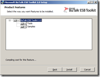 As you may have noticed as dedicated BizTalk professional ESB toolkit 2.0 is available. Is targeted towards BizTalk 2009 Server product and supports Windows 2003/2008 OS. There is a x86 and x64 msi, documents and compiled help file that can be download. I tried installing Toolkit on my BizTalk Server 2009 Personal Sandbox (2008 Windows Server OS, x86).